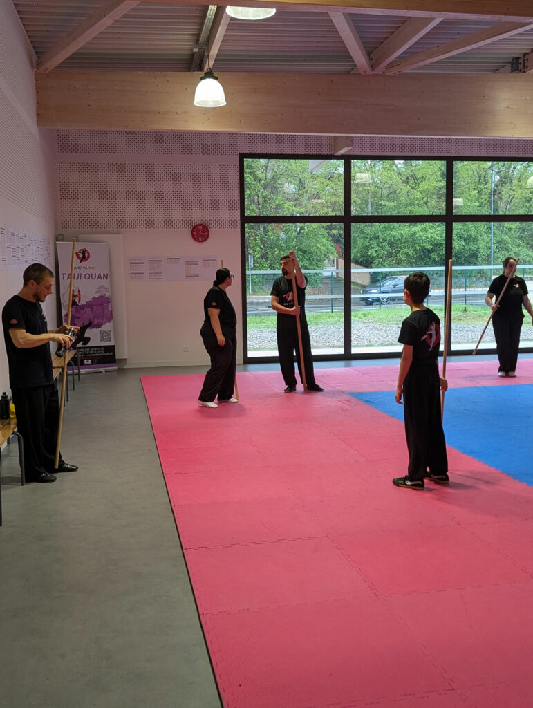 Cette arme demande précision, coordination, vitesse et engagement. À travers les exercices proposés, les pratiquants ont pu approfondir leur technique, affiner leurs déplacements et mieux comprendre la logique du travail au bâton dans la pratique du Wushu.